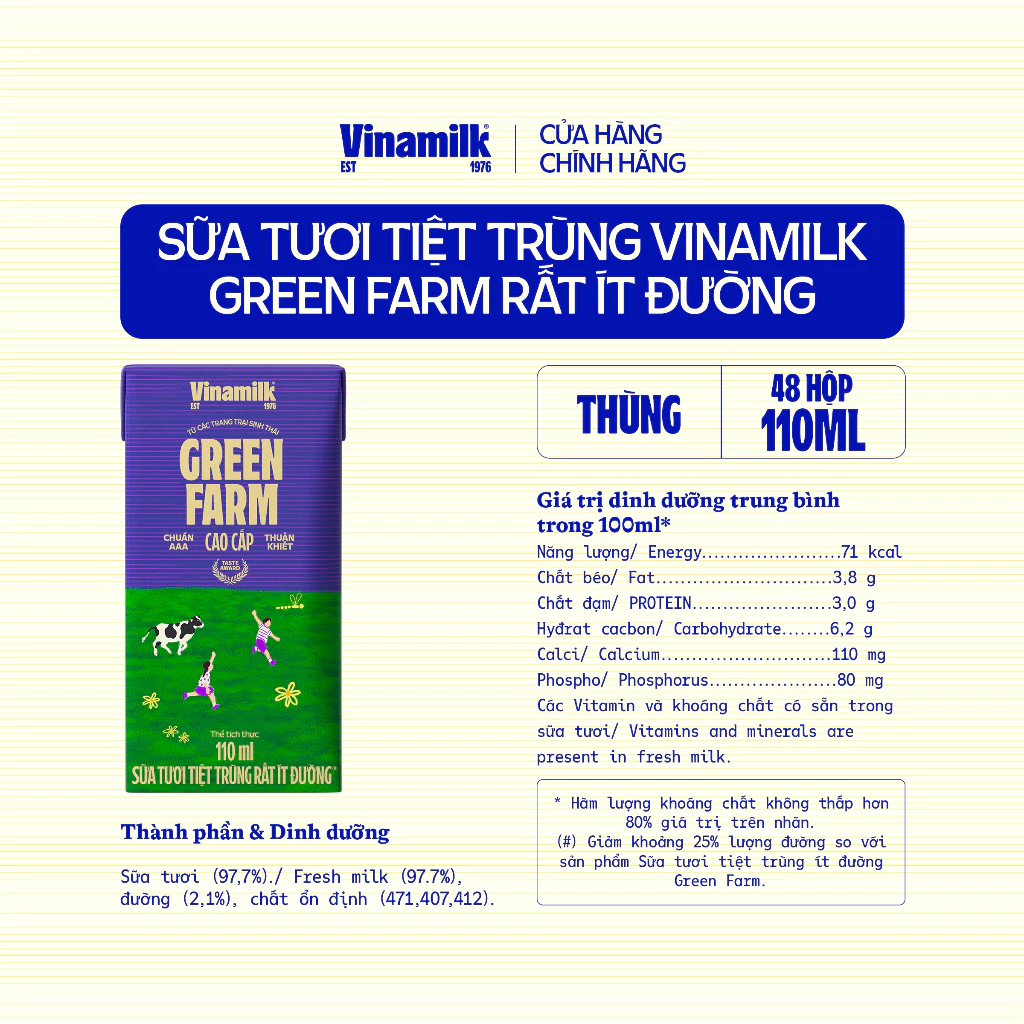 14 đánh giá cho Thùng 48 hộp Sữa tươi Tiệt Trùng Vinamilk Green Farm rất ít đường 110ml